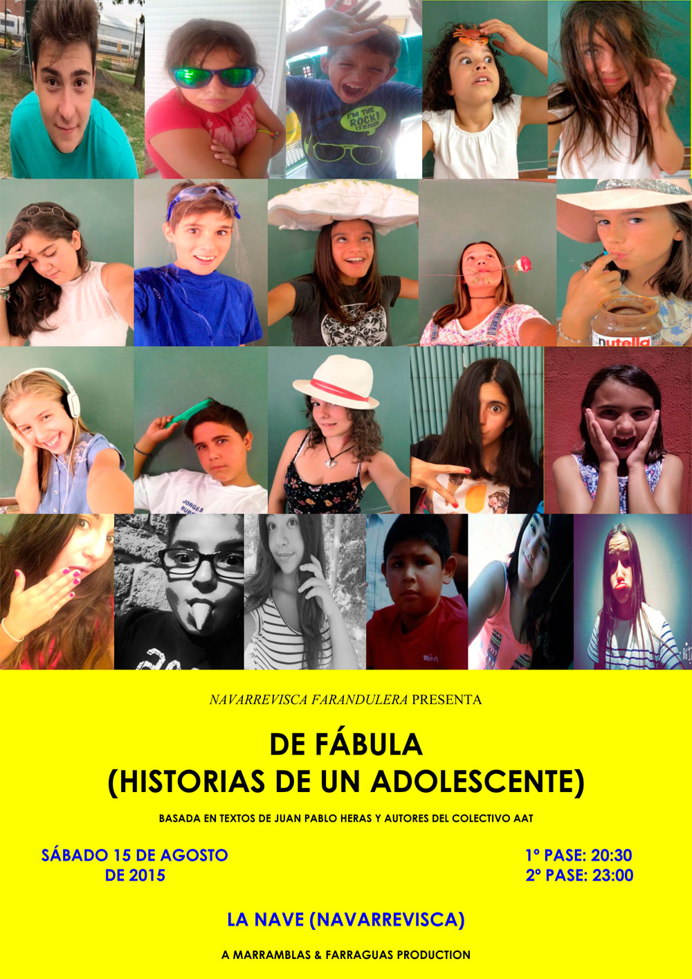 Sobre textos del dramaturgo madrileño Juan Pablo Heras y otros autores del colectivo AAT, nos acercamos al mundo de las aulas con estas pequeñas historias sobre y para estudiantes. Una historia de amor en un aula de castigo, la búsqueda de la sexualidad prohibida en un mundo abierto y a la vez difícil, celos, castigos, el odio y afecto entre padres e hijos fueron los temas abordados en el primer proyecto de NAVARREVISCA FARANDULERA.